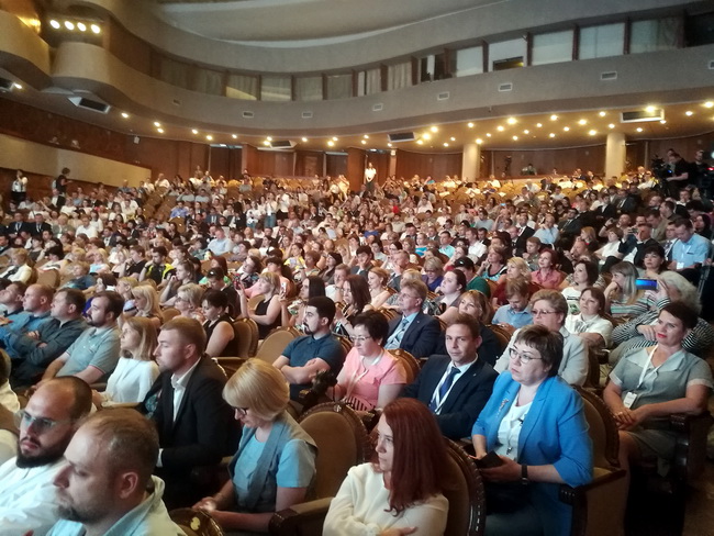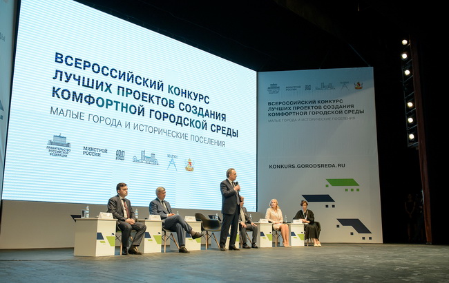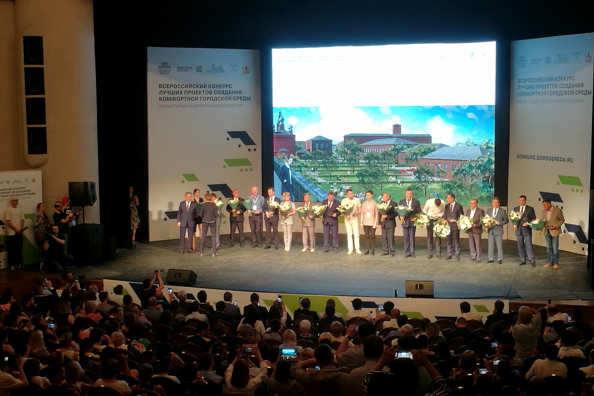 Подведение итогов и церемония награждения победителей Всероссийского конкурса лучших проектов создания комфортной городской среды прошли в Концертном зале с участием главы региона и вице-премьера правительства России. Александр Гусев и Виталий Мутко обратились к собравшимся с приветствиями.
