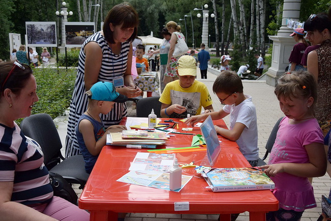Юные гости на мастер-классах смогли изготовить куклы для домашнего театра и книжные закладки, поиграть в весёлые игры и сделать снимки в фотозоне со сказочными героями «Чудо-маски из сказки».
