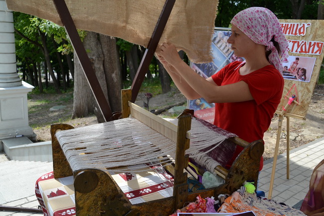 С 13:00 часов воронежцы и многочисленные посетители Воронежского центрального парка знакомились с разнообразием выставочной экспозицией «Край родной, навек любимый», где были представлены древние российские ремёсла – кузнечное, гончарное, ткацкое – в действии, причем воробьёвцы представили сразу два действующих ткацких станка (малый и большой). Самые заинтересованные и активные воронежцы смогли получить навыки работы на настоящем ткацком станке и гончарном круге, а ещё из разноцветных лоскутков ткани и ниток без использования иглы изготовить куклу-оберег.