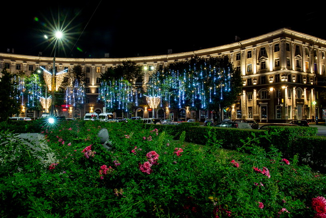 Оценить праздничную иллюминацию во всей красе горожане смогут в День города. Предусматривается включение иллюминации в выходные и праздничные дни – вместе с системой наружного освещения и до полуночи, чтобы не мешать обитателям центра города.