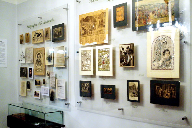 Кольцов, сочетая дворянскую лирику с народной песней, создал новое течение в русской поэзии, названное в его честь кольцовской традицией. Стихи Алексея Кольцова имели сильное влияние на творчество многих поэтов, в том числе на Ивана Никитина, Сергея Есенина, Михаила Исаковского. Выставка размещена в двух залах и состоит из разделов: «Биография А.В. Кольцова», «Иллюстрации к произведениям поэта», «Кольцовская тема в искусстве».