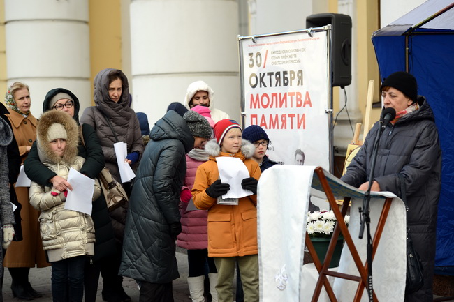 – Мы молимся и об этих людях, потому что они ещё больше нуждаются в нашей молитве. Мы не ставим памятники палачам, мы не собираемся этого делать, не оправдываем зло и насилие. Но мы знаем, что для того, чтобы в нашем обществе по-настоящему произошло исцеление, необходимо обрести то подлинное и настоящее основание единства и мира, которое мы утратили в ХХ веке, – сказал на открытии акции председатель малого православного братства во имя свт. Тихона Задонского Евгений Федосов. Молиться за других – трудное дело, в списках есть имена работников НКВД, членов партии большевиков, есть явно неверующие или нехристиане. Поминовение погибших и пострадавших – это молитва, усилие памяти, покаяния, которое очищает от зла, ненависти, ведёт к изменению сердца, даёт надежду на милосердие Божие, на преображение людей и общества. Читать имена и вспоминать погибших и пострадавших мог любой желающий человек.