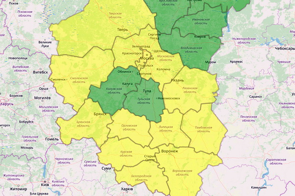 В Воронежской области объявлен жёлтый уровень погодной опасности