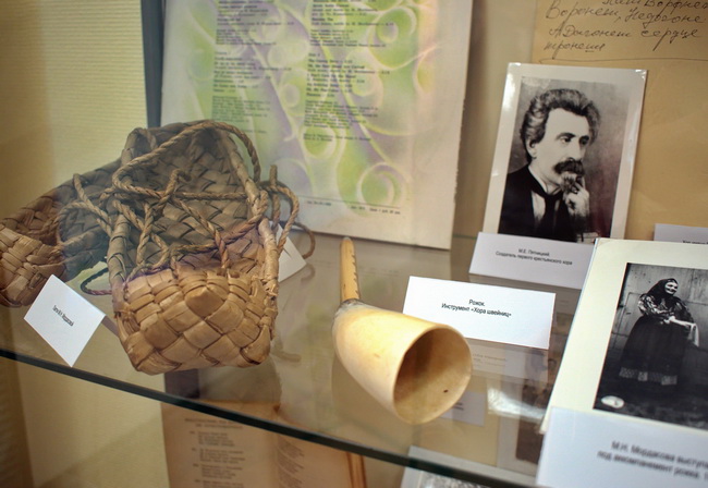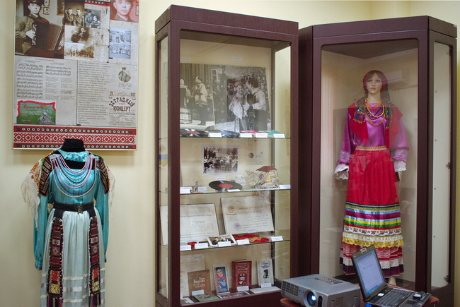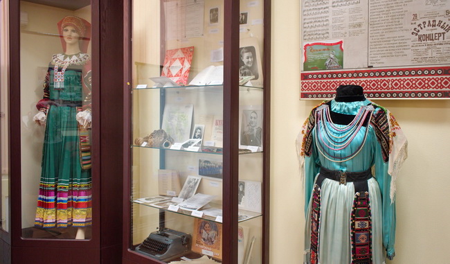 Долгая совместная семейная и сценическая жизнь Марии Николаевны с Иваном Руденко представлены уникальными книжными изданиями, личными сувенирами, грамотами, и грампластинками. Три копии концертных костюмов, которые можно увидеть на выставке – это всего лишь малая часть коллекции, хранящейся в музее-квартире М.Н. Мордасовой – подразделении литературного музея. Дополняют экспозицию стенды. На них, помимо фотографий, размещены тексты песен и частушек Марии Николаевны.