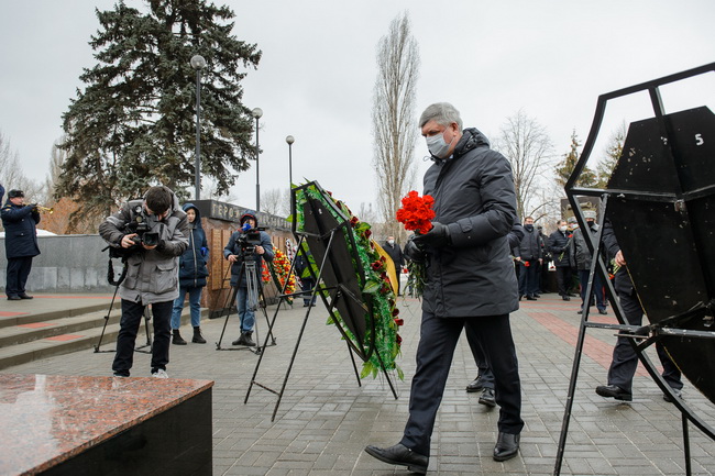 Церемония прошла на Аллее Героев рядом с Центром военно-патриотического воспитания «Музей-диорама». Участники мероприятия возложили цветы и венки к мемориалу, после чего на мемориальном комплексе прошла траурная панихида, которую провели священнослужители Воронежской митрополии.