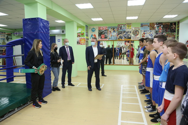 – Татьяна Викторовна – обладательница единственного пояса WBC в России. Мы гордимся ею и её достижениями. Её бой был сложным и очень зрелищным, если не видели – посмотрите обязательно. Чтобы заработать такой пояс, нужно очень много трудиться, – отметил Вадим Юрьевич, обращаясь к юным боксерам – воспитанникам СШОР № 4, пришедшим на мастер-класс, и поблагодарил спортсменку: – Мы вас поздравляем и искренне вами гордимся. Отдавайте всё, что вы умеете, нашим детям.