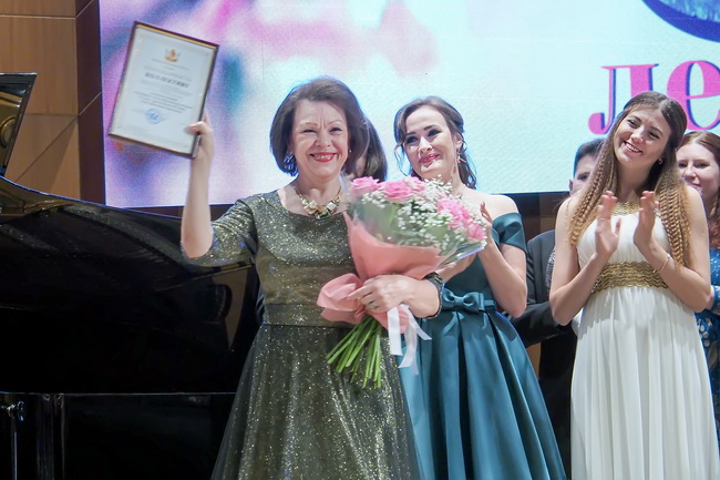 Почётные грамоты Воронежской областной думы вручила художественному руководителю музыкально-литературного лектория Валентине Головиной и управляющей коллективом Валентине Толоконцевой помощник депутата Государственной Думы ФС РФ по работе в Воронежской области Людмила Никитченко, в своё время – руководитель лектория.