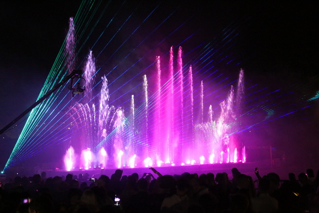 Минуты сменяются секундами: 3,2,1… и справа от сцены под восторженные крики мальчишек и девчонок вырастает стена воды: струи фонтана, меняя свою высоту, форму и цвет в такт и интонацию звучащей музыки, словно танцуют – то замирают, то набирают мощь. Все это действо сопровождает впечатляющее лазерное шоу и салют.