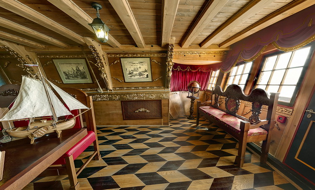 В результате кропотливого труда парусник был воссоздан в точности не только снаружи, но и внутри. В музейной экспозиции размещены элементы старинного корабельного снаряжения, детально восстановлено вооружение с полным комплектом инструментов для обслуживания орудий, максимально подробно представлены предметы быта офицеров и нижних чинов команды. Все это позволяет получить полное представление об условиях службы и быта на корабле начала XVIII века.