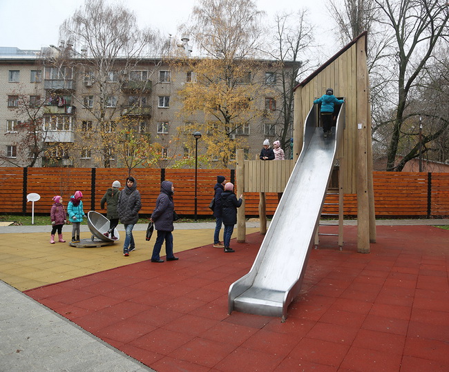 Здесь появились современные детские игровые комплексы с резиновым покрытием, горками, башнями, канатами, подвесным мостиком, качели-гамаки, батут, песочница с домиками, качалки-балансиры и другие привлекательные элементы детского оборудования, современные лавочки различных форм, уютные домики-беседки, парклеты и т.д. Подрядчиком, воплотившим концепцию в жизнь стало ООО «ПСТ Сервис».