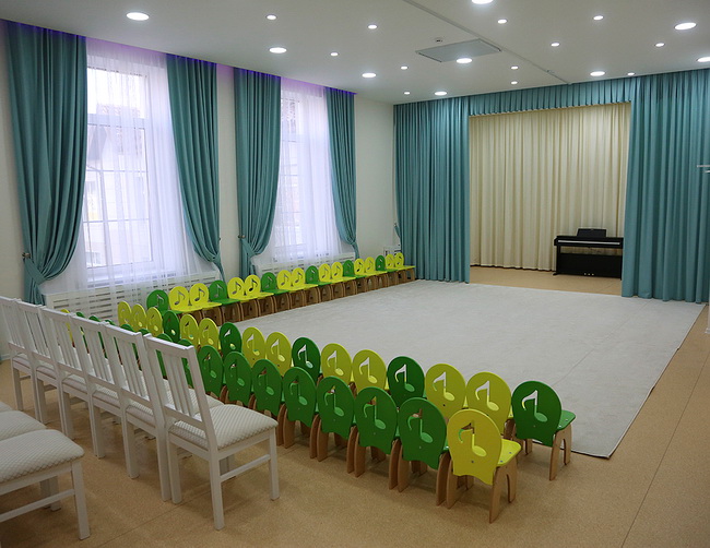 Новый детсад рассчитан на 300 воспитанников, а это 13 групп: 6 из них для малышей ясельного возраста и 7 для ребят старше 3 лет. Сад укомплектован полностью, правда, в первый день его работы деток пришло не много – многие родители ещё оформляют необходимые документы, медицинские карты.