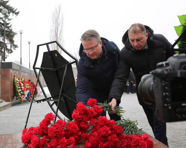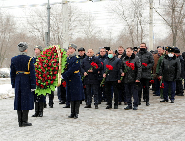 Мэр Воронежа Вадим Кстенин возглавил колонну от администрации города. Под звуки оркестра Военно-воздушной академии имени Жуковского и Гагарина собравшиеся возложили цветы и венки к вечному огню у Братской могилы № 6. Затем клирики Воронежской митрополии отслужили траурную панихиду по погибшим воинам.