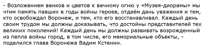 Кроме того, в этот особенный день глава Воронежа поздравил с годовщиной освобождения Воронежа его защитников – Ивана Писарева и Митрофана Москалёва.