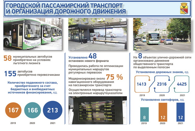 В своём отчете о деятельности администрации глава Воронежа Вадим Кстенин уделил особое внимание развитию сферы городских пассажирских перевозок в 2021 году, а также проделанной работе в области дорожного хозяйства.