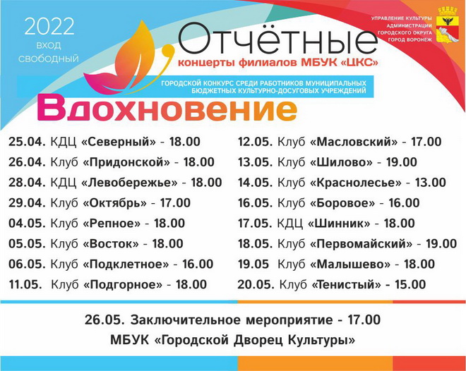 Управление культуры администрации городского округа город Воронеж, Централизованная клубная система и Городской Дворец культуры сообщили о старте ежегодного конкурса среди работников муниципальных бюджетных клубных учреждений культуры «Вдохновение».