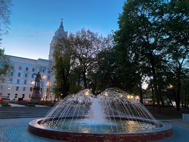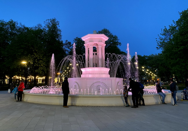 Следующей остановкой станет старейший фонтан Воронежа в Кольцовском сквере. Он работает со вторника по четверг с 10:00 до 22:00, а с пятницы по воскресенье – до 22:30. А вот подсветкой полюбоваться выходит не всегда – на светомузыкальное представление можно попасть только в пятницу, субботу и воскресенье с 21:00.