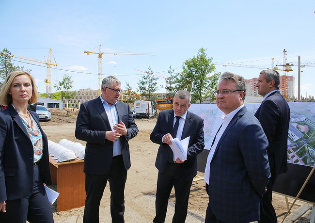 Инспекционный выезд был предпринят для того, чтобы на месте оценить темп и качество работ на объекте. О текущей ситуации мэру доложили представители подрядчика – учредитель компании ООО «СтройИнжиниринг» Денис Станкевич и директор Игорь Жиглинский.