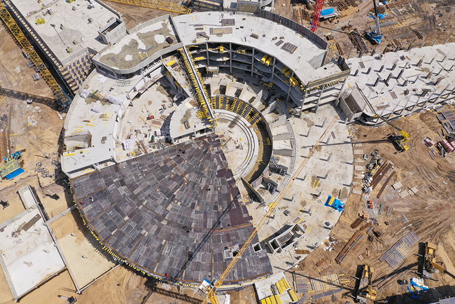 Подрядчики рассказали, что скоро планируется завершить цикл монолитных работ, закончить процесс согласования внешнего вида объекта, а также об используемых для фасадов здания материалах.