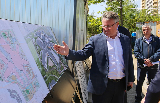 Мэр Воронежа Вадим Кстенин проинспектировал ход работ по возведению мега-школы на Московском проспекте и дал оценку