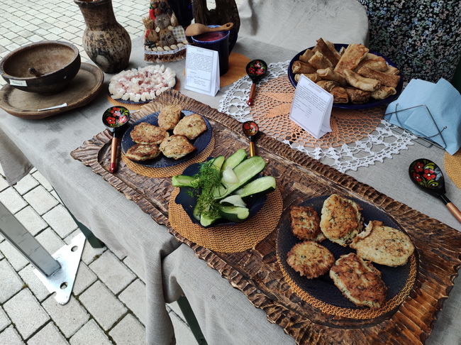 В 17:00 начали работать тематические интерактивные площадки. Гости познакомились с белорусским фольклором, ремеслами и кулинарными традициями: драники, малосольные огурчики, налистники (блины) и кулага (старинный десерт, напоминающий кисель, в качестве загустителя используют ржаную муку).