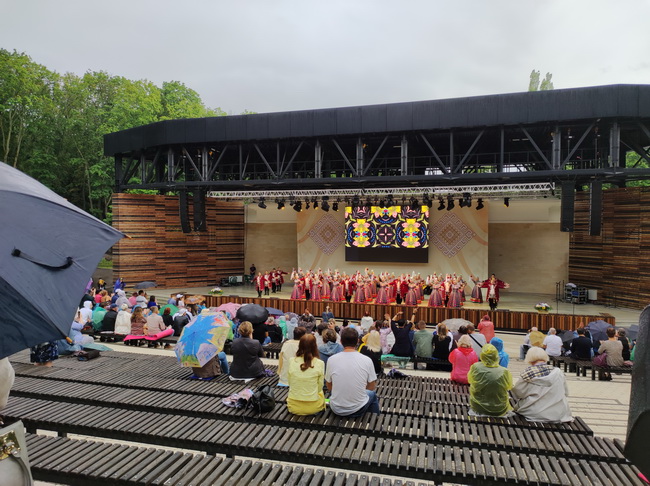 После этого разогрева на сцену вышел коллектив Воронежского академического русского народного хора имени К.И. Массалитинова. Воронежцы исполнили песню «Родники», а также специально подготовленную «Песня про Неман» на белорусском языке. Зрители при этом сидели под зонтиками и в дождевиках. Но дождь и прохладный ветер не испортили обедни.