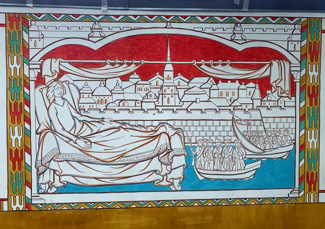 Александр Мотовилов отметил, что в росписи заметна средневековая стилистика: «Это традиция готических миниатюр. Она и была выбрана, потому что во времена Петра многое заимствовалось из Европы».