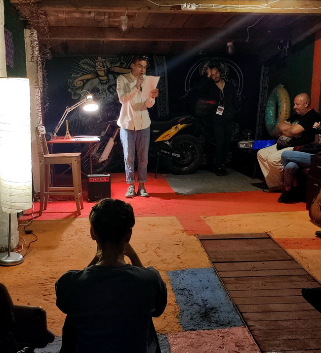 - С позиции выступающих всё прошло отлично. Новые люди, новые знакомства, ламповая атмосфера – просто не к чему придраться. Выступать перед такой разношерстной, местами грубоватой толпой – это опыт. Никаких претензий у меня нет, всё было в рамках разумного и дозволенного. Хотя, когда появляется соревновательный момент, например, на «поэтической дуэли», ты видишь реакцию толпы, проходишь из раунда в раунд дальше, у тебя появляется азарт и ты выкладываешься на 200%. От себя я хочу посоветовать поэтам – не волноваться и прогнать хотя бы раз свой материал перед выступлением.