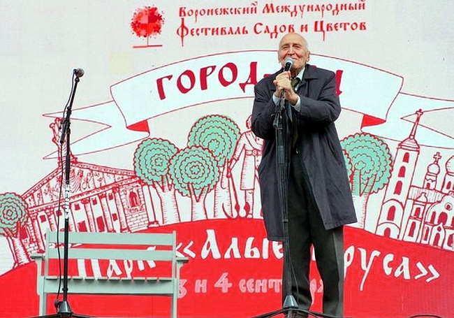 Следом на подиум вышли представители журфака ВГУ – доцент кафедры электронных СМИ и речевой коммуникации (бард) Лариса Дьякова и студенты. Дьякова поблагодарила гостя за то, что он учит людей любить природу, и спела.