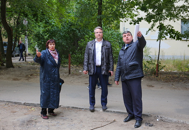 Жительница Советского района Татьяна Енат в ходе совещания пригласила пройти вместе с ней по внутриквартальной территории в районе домов 30а и 34 по улице Героев Сибиряков. Мэр не смог отказать активному гражданину. Место, действительно, требует внимания: там нужно сделать освещение, которого, по словам Татьяны Даниловны, не было с момента заселения этих многоэтажек, привести в порядок проходы к домам – пока это просто грунтовые тропинки, проредить деревья и убрать сухостой.