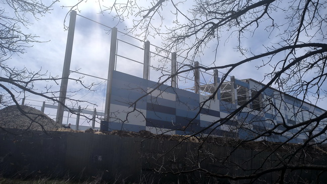 Ну, а главное состоит в том, что футбольный манеж, который должны были принять еще полгода назад, очень сильно не готов (и это ещё мягко сказано). Общественники убедились в этом в ходе выездной проверки. На площадке ещё идут земляные работы. Вокруг недостроенного здания, зияющего пустыми глазницами окон, высятся огромные кучи грунта. Нет даже намёка на благоустройство территории, которое давно должны были завершить.