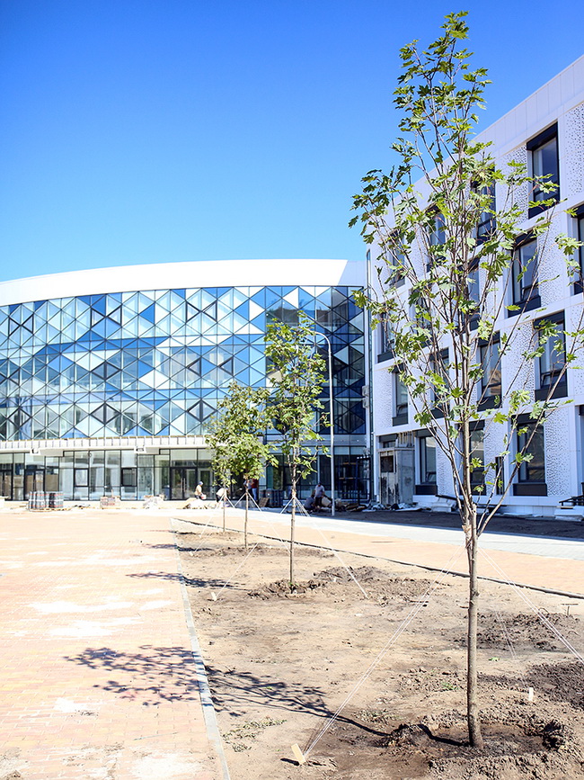Работы по возведению одного из крупнейших учебных комплексов в стране идут в рамках национального проекта «Образование». В настоящее время на площадке выполняются благоустройство и высадка растений, пуско-наладочные работы по слаботочным системам, монтаж оборудования, уборка помещений.