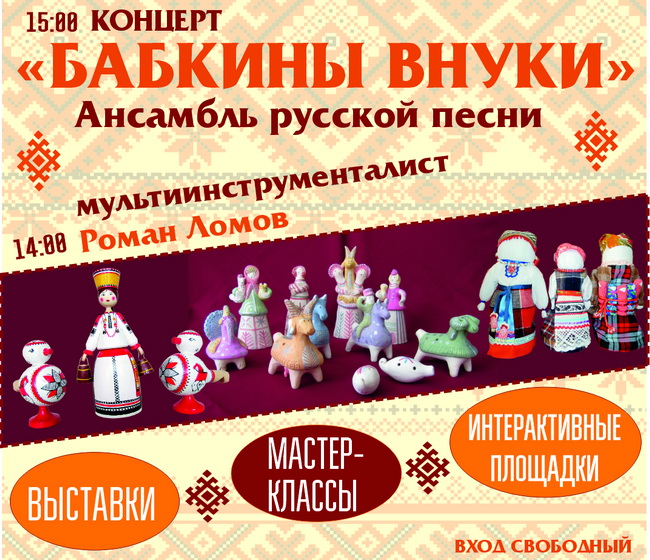 Праздничные мероприятия в рамках фестиваля начнутся в 11:00. Ярким моментом программы станет выступление хэдлайнеров. В 14:00 начнётся концерт московского музыканта-виртуоза Романа Ломова, а в 15:00 — популярного ансамбля русской песни «Бабкины внуки».