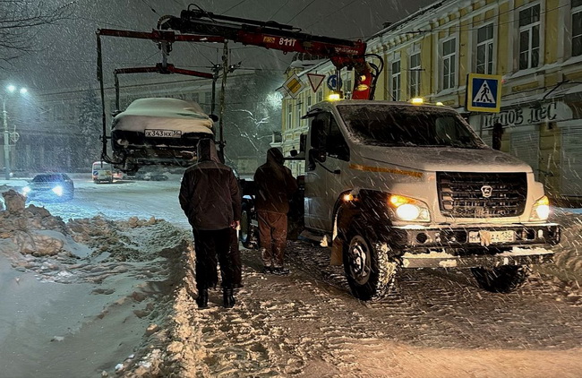 На улицах города работали 248 единиц снегоуборочной техники с учетом привлечённой, в том числе и эвакуаторов, помогающих перемещать припаркованные машины.