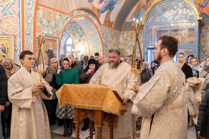 Богослужебные песнопения исполнял малый состав митрополичьего мужского хора Благовещенского кафедрального собора под управлением регента Ильи Ижогина.