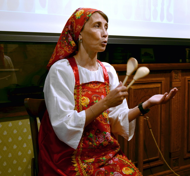 30 августа здесь прошёл мастер-класс «Без ложки – не обед, без стука – не концерт!». Старший научный сотрудник Светлана Буйволова в образе Маланьи, кухарки Никитина, рассказала гостям историю привычного бытового предмета – ложки, которая со временем превратилась и в музыкальный инструмент.