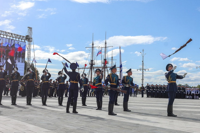 Узловым событием акции на Адмиралтейке стал парад юнармейцев. По площади прошли как совсем молодые отряды, принявшие сегодня клятву, так и их более опытные товарищи, принимавшие участие в параде Победы на площади Ленина.
