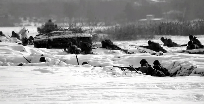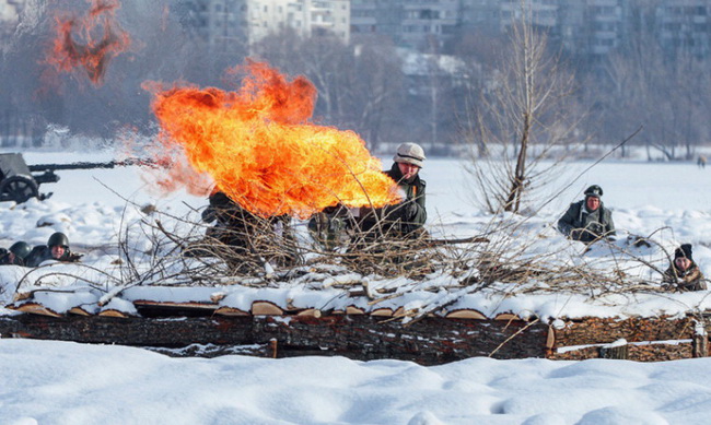 Благодаря работе пиротехников, зрители увидели танковый бой, в том числе дуэль Т-34 с немецким Т-III, которая заканчивается поражением немецкой машины. Далее – работа легендарной «Катюши», общая атака на двух флангах и прорыв фронта: 25 января 1943 года в наступление с востока перешла 60-я армия под командованием генерал-лейтенанта Ивана Черняховского, с другой стороны город освобождала 40-я армия под командованием генерал-майора Кирилла Москаленко.