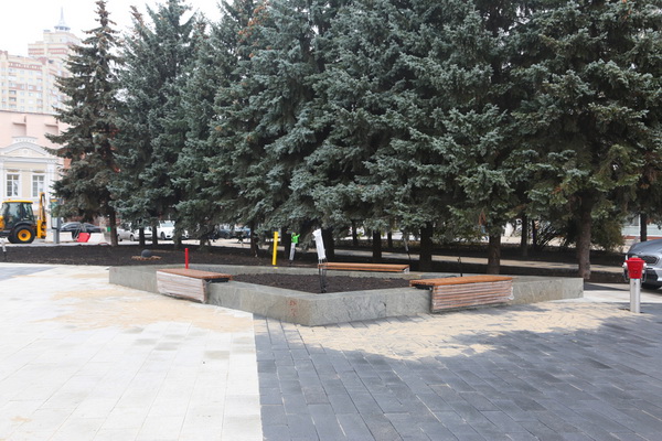 Мэр Воронежа Вадим Кстенин провёл инспекционный выезд, в ходе которого оценил завершающееся благоустройство сквера им. Куцыгина, расположенного между зданиями диагностического центра и областной Думы.