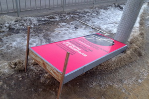 Утром неравнодушный очевидец ошарашил нашу редакцию сообщением, что в центре города «валяется в грязи Платоновский фестиваль». Слово за слово, оказалось, что на улице Кольцовской, на перекрёстке с Плехановской упал рекламный штендер фестиваля. Тысячи воронежцев идут мимо и не обращают никакого внимания.