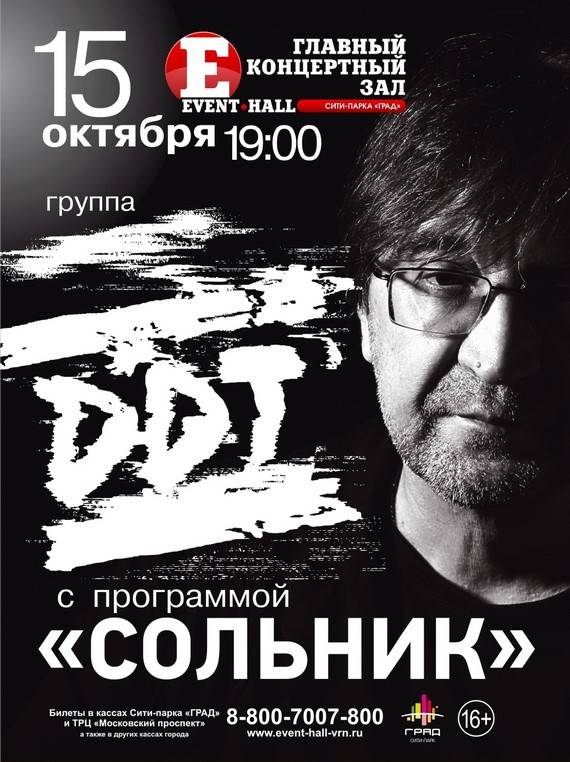 Группа «ДДТ» приедет в Воронеж в октябре с новой программой «Сольник». Воронежцы имеют возможность побывать на концерте культовой рок-группы и ее лидера.