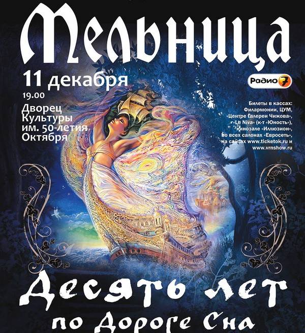 11 декабря в 19:00 во Дворце имени 50-летия Октября в рамках своего гастрольного тура выступит популярная фолк-рок группа «Мельница». Большой концерт группы «Мельница» называется «Десять Лет по Дороге Сна». Именно десять лет назад вышла первая пластинка группы с этим названием, сейчас имеющая ранг культовой.