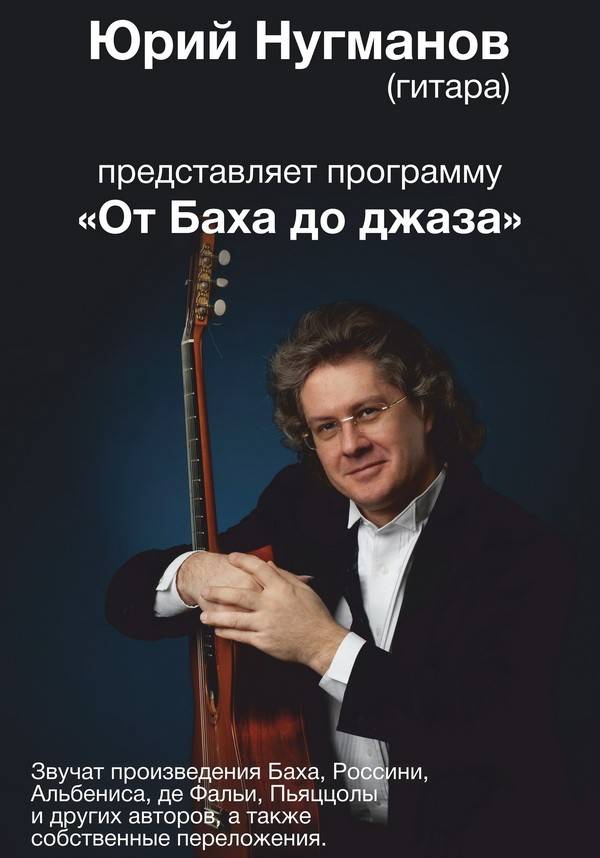 16 апреля в Воронежской филармонии состоится сольный концерт замечательного российского гитариста Юрия Нугманова. Он приезжает в наш город с программой «Гитара от Баха до джаза».