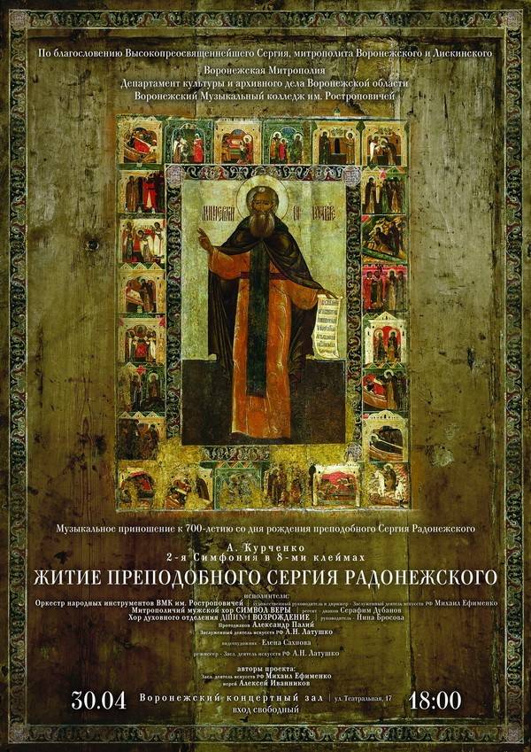 По благословению Высокопреосвященнейшего Сергия, митрополита Воронежского и Лискинского Воронежская митрополия (отдел по культуре), департамент культуры и архивного дела Воронежской области, Воронежский музыкальный колледж имени Ростроповичей проводят торжественную акцию, посвященную 700-летию преподобного Сергия Радонежского.