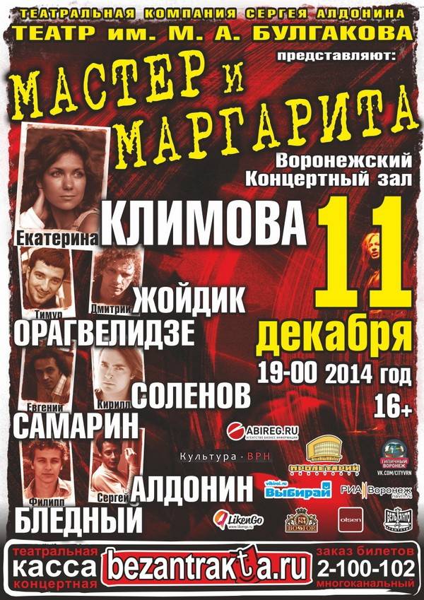 В Воронеж привозят спектакль Сергея Алдонина «Мастер и Маргарита»