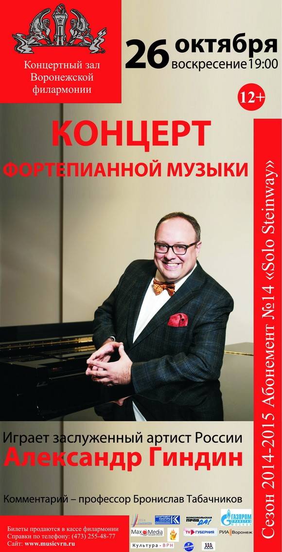 В субботу, 25 октября, в 18:00 в зале Воронежской областной филармонии состоится концерт в рамках Международного музыкального проекта «Ландыш серебристый», посвященного 175-летию со дня рождения великого русского композитора Петра Ильича Чайковского. А 26 октября пианист Александр Гиндин даст сольный концерт.