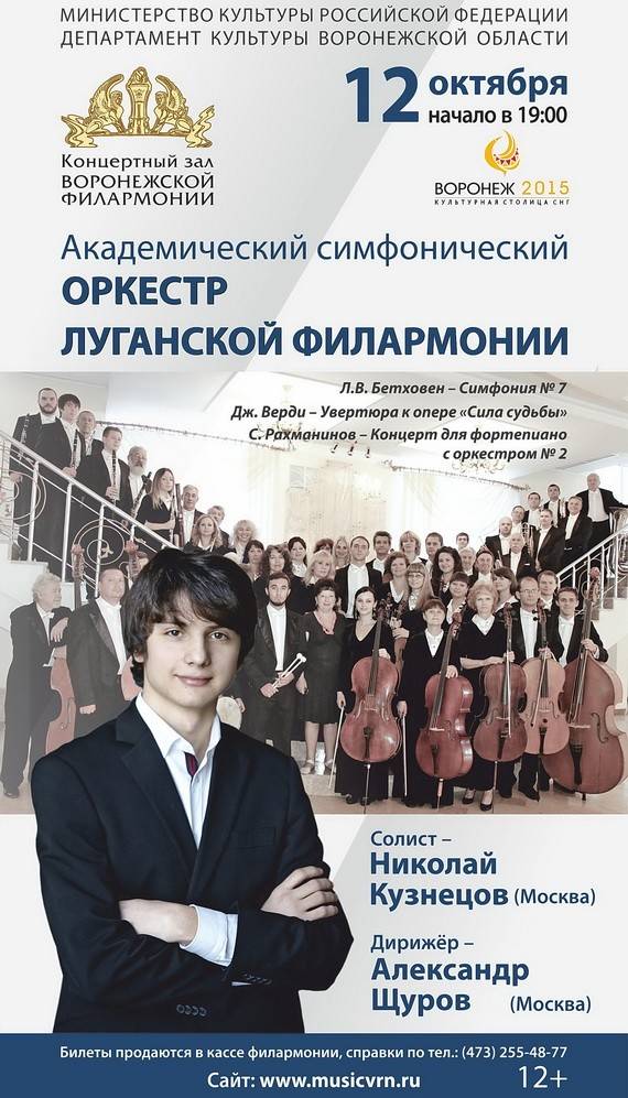 12 октября 2015 года в зале Воронежской филармонии в рамках гастрольного тура состоится концерт Луганского академического симфонического оркестра под управлением дирижера Александра Щурова. Гастрольный тур по городам России проходит при поддержке Министерства культуры РФ.