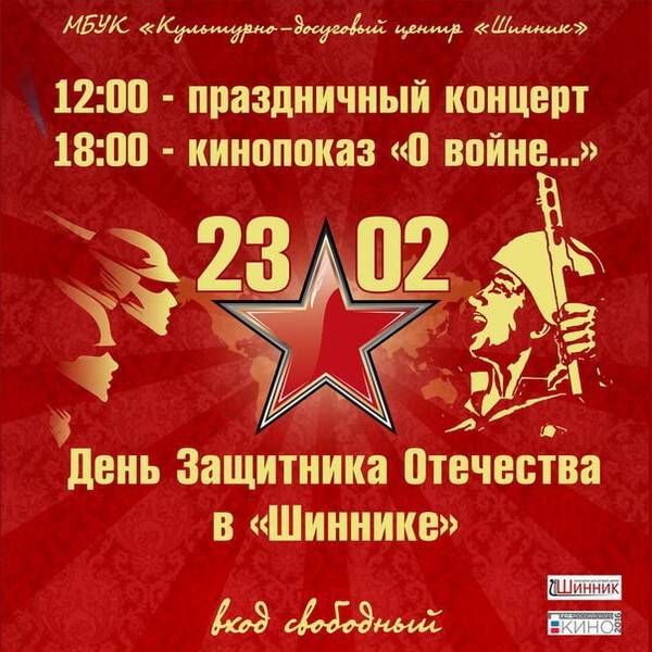 23 февраля культурно-досуговый центр «Шинник» приглашает на тематический концерт и кинопоказ