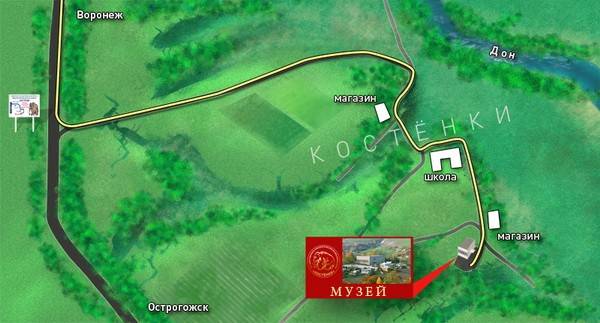 Музей-заповедник «Костенки» расположен на территории сел Костенки и Борщево Хохольского района Воронежской области в 35-40 км к югу от областного центра. Эти села располагаются в очень живописном месте на высоком правом берегу Дона, изрезанного глубокими древними балками и оврагами.