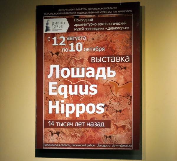 Проект «Лошадь. Equus. Hippos» сочетает в себе художественное и образовательное начала. Представлены артефакты с места гибели диких лошадей «Дивногорье-9» и стоянки древнего человека «Дивногорье-1» возрастом 12-14 тысяч лет. Уникальные экспонаты дополнены художественными произведениями из коллекции музея имени И.Н. Крамского – жанровыми полотнами, скульптурными композициями.