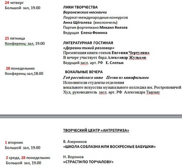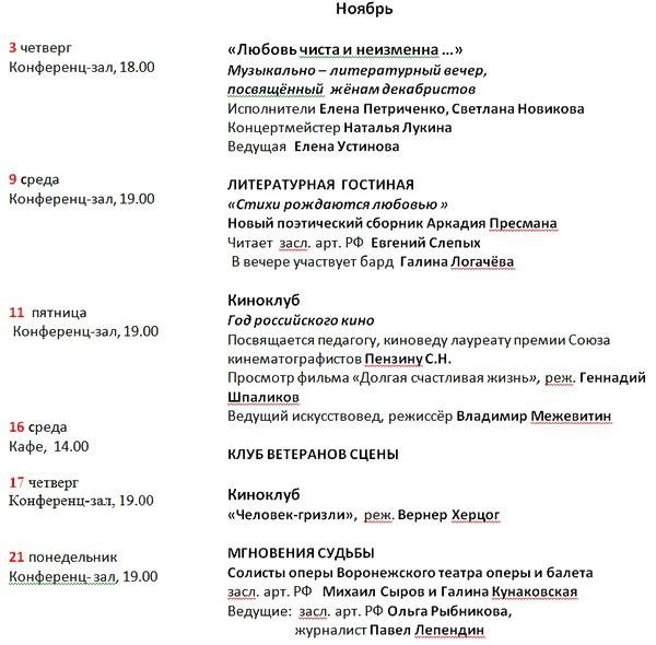 Воронежский Дом актёра приглашает в ноябре на вечера и спектакли